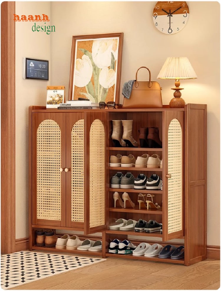 Trong nhịp sống hiện đại, việc sở hữu một tủ giày dép gỗ không chỉ giúp lưu trữ giày dép gọn gàng mà còn góp phần nâng cao thẩm mỹ cho ngôi nhà. Sản phẩm được làm từ gỗ sồi tự nhiên nhập khẩu Nga kết hợp cùng cánh mây đan thủ công, mang đến sự bền bỉ và tinh tế. Đây là mẫu nội thất được nhiều gia đình lựa chọn bởi thiết kế hiện đại, công năng tiện ích và chất lượng vượt trội.