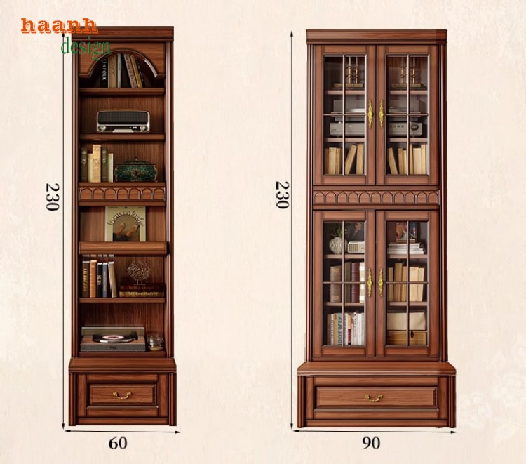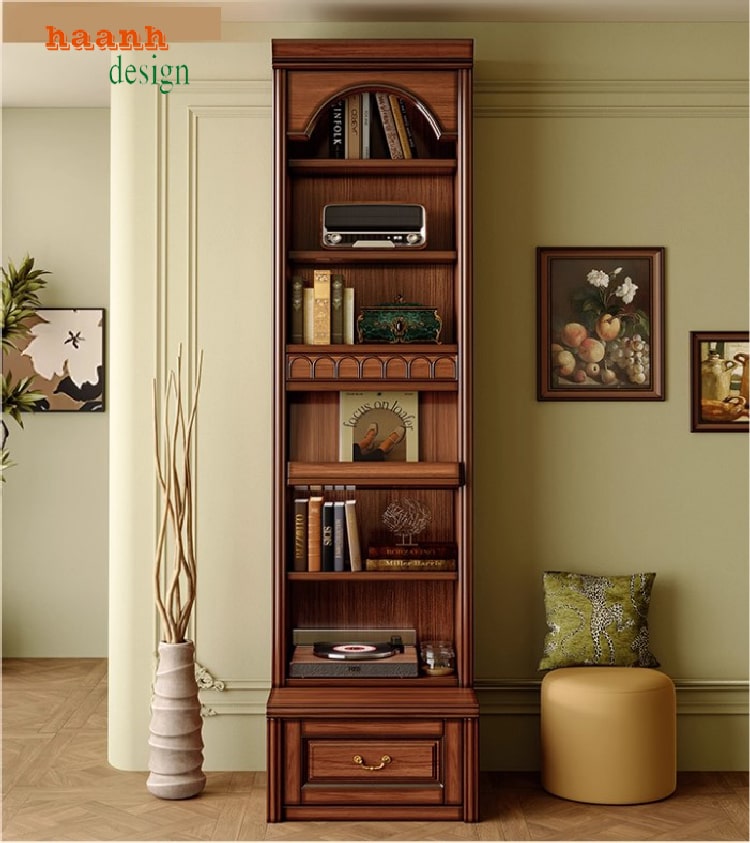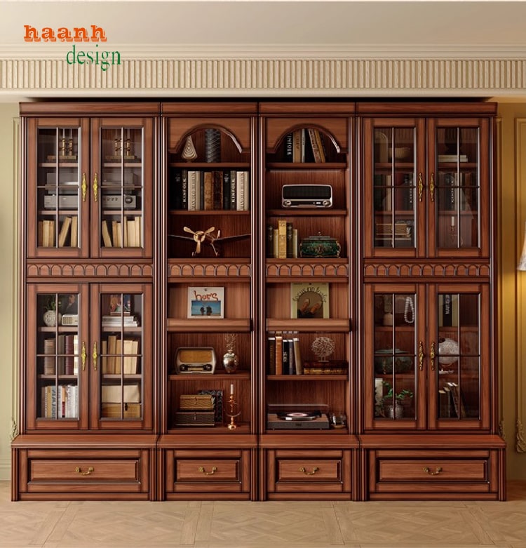 Tủ kệ sách gỗ tự nhiên tân cổ điển sang trọng