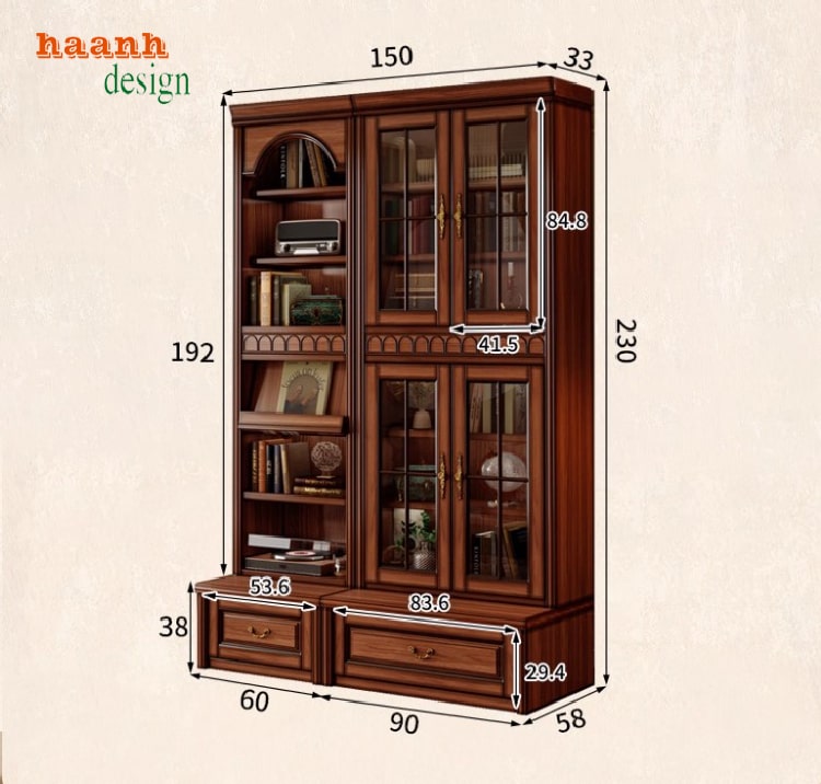 Không chỉ chú trọng vào thẩm mỹ, tủ để sách bằng gỗ còn được thiết kế thông minh với nhiều ngăn chứa, kệ để sách và không gian trưng bày vật dụng decor, mang lại sự tiện lợi tối đa cho người sử dụng.