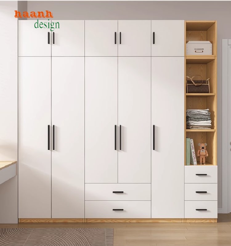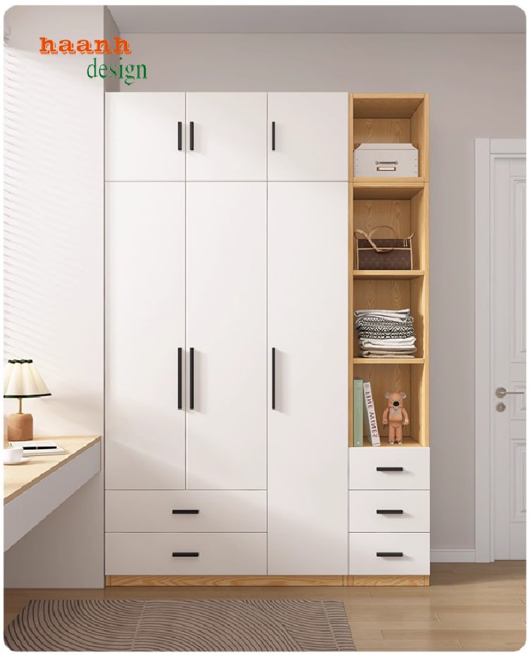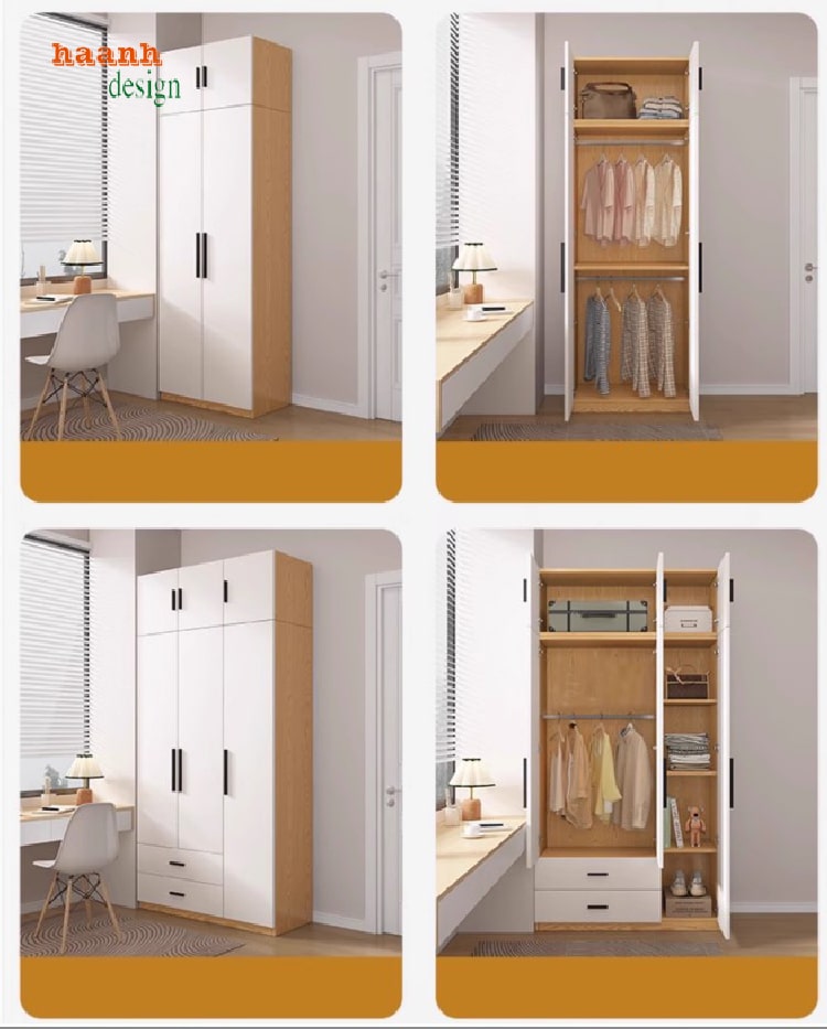 Trong không gian nội thất hiện đại, tủ quần áo gỗ ép là một trong những sản phẩm được ưa chuộng nhờ sự tiện lợi, thẩm mỹ cao và khả năng tối ưu hóa diện tích. Với chất liệu khung gỗ công nghiệp MDF chống ẩm bề mặt trắng phủ Melamine cùng phụ kiện Hafele nhập khẩu Đức, sản phẩm không chỉ bền đẹp mà còn mang đến trải nghiệm sử dụng vượt trội cho gia đình.