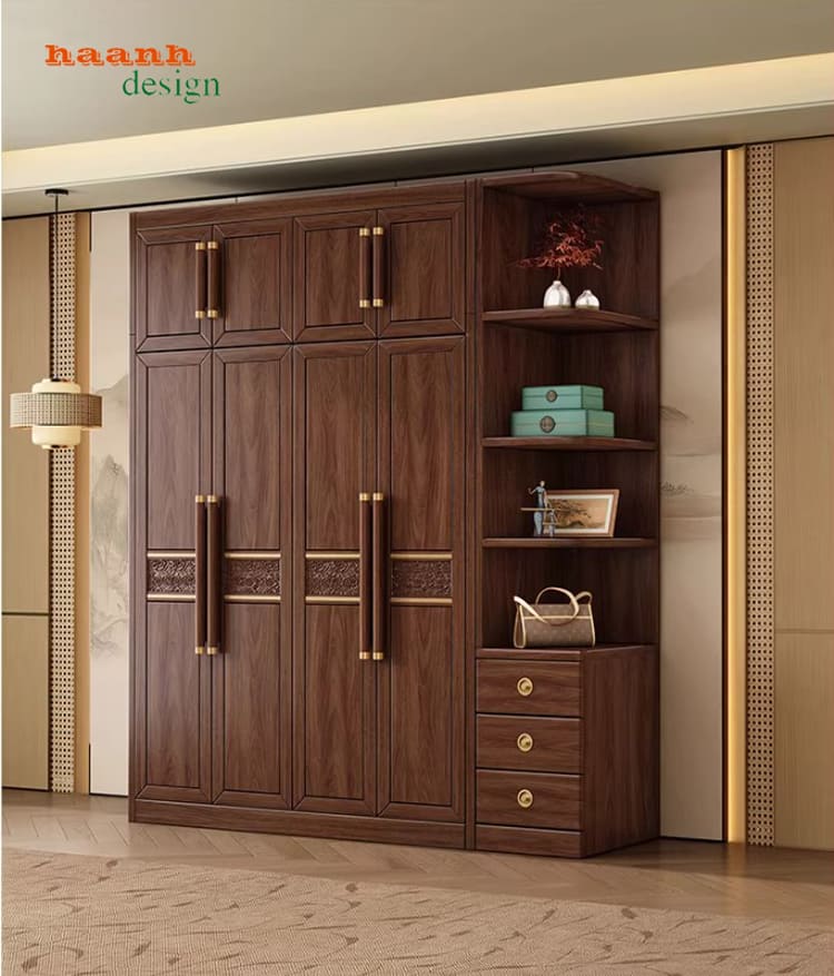 Ngoài ra, nhiều mẫu tủ quần áo đẹp còn tích hợp ngăn để chăn ga, vali hoặc phụ kiện cá nhân.