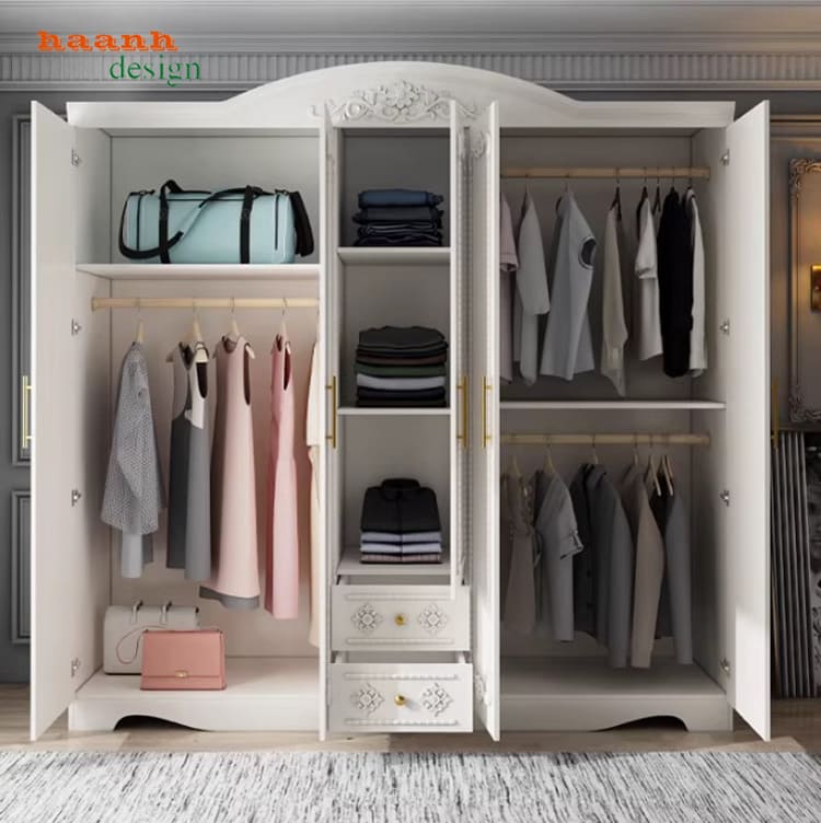 Các mẫu tủ quần áo tân cổ điển thường được thiết kế nhiều ngăn như: