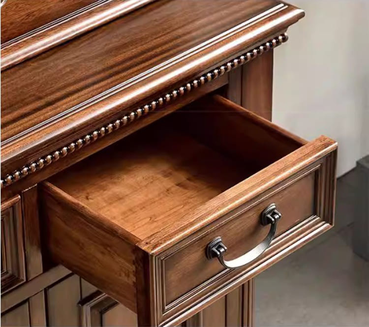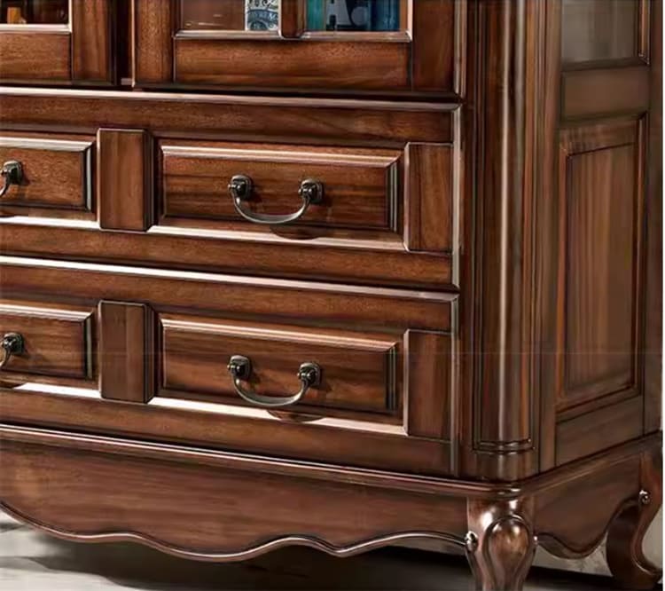 Tủ rượu tân cổ điển đẹp là sản phẩm nội thất cao cấp với thiết kế sang trọng, chất liệu gỗ hương tự nhiên và sơn PU Inchem bền đẹp. Sản phẩm không chỉ giúp lưu trữ rượu mà còn tạo điểm nhấn đẳng cấp cho phòng khách, đặc biệt phù hợp với không gian tân cổ điển châu Âu.