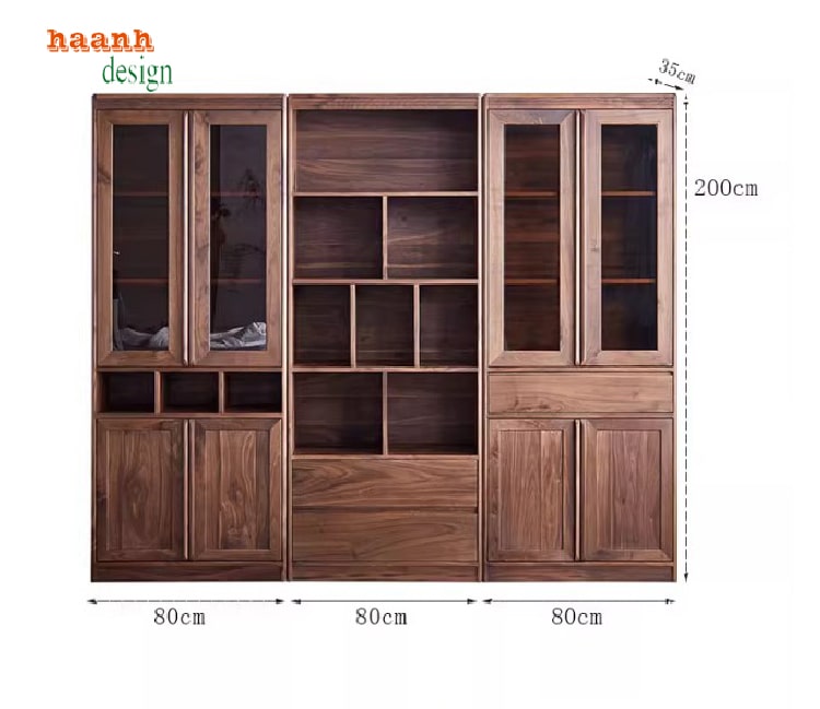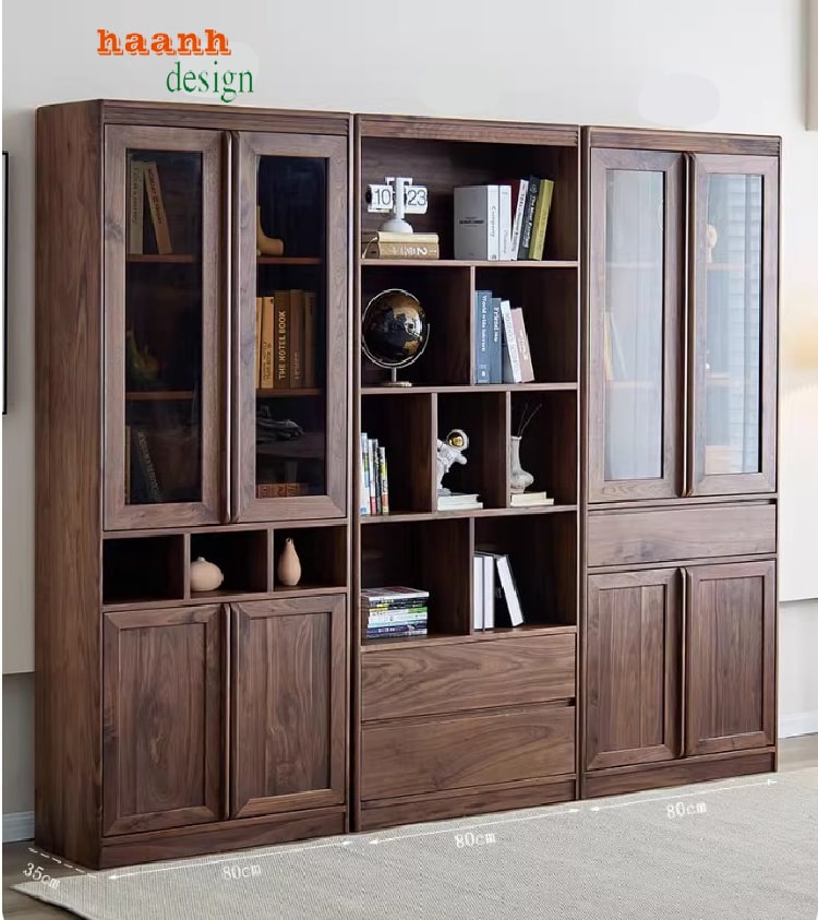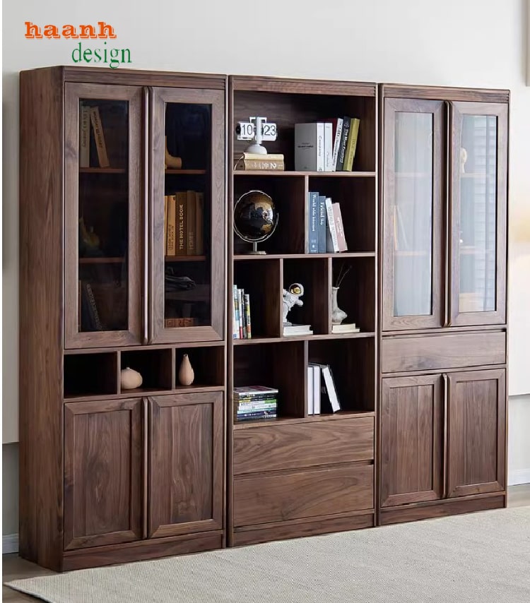 Tủ sách đẹp hiện đại làm từ gỗ óc chó tự nhiên nhập khẩu Bắc Mỹ mang đến không gian phòng đọc sang trọng, tinh tế và bền bỉ. Với quy trình tẩm sấy chống cong vênh, mối mọt, sơn PU mờ 75% Inchem Mỹ, cùng phụ kiện Hafele Đức, sản phẩm đạt chuẩn chất lượng cao. Đây là lựa chọn hoàn hảo cho phòng đọc, thư viện gia đình hoặc không gian làm việc hiện đại.