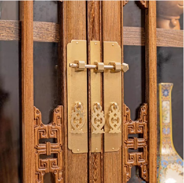 Tủ sách gỗ phong cách Á Đông với hoa văn tứ linh chạm tay