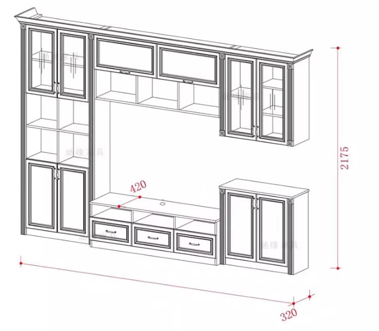 Tủ tường bằng gỗ phòng khách được chế tác từ gỗ sồi tự nhiên nhập khẩu Nga hoặc Mỹ, nổi bật với: