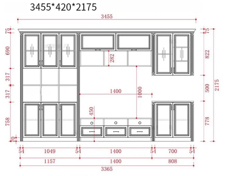 Một trong những ưu điểm nổi bật của tủ tường phòng khách là thiết kế liền khối: