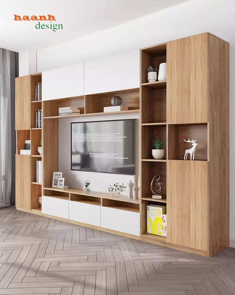👉 Với nhu cầu sử dụng hiện nay, tủ tường gỗ công nghiệp là lựa chọn tối ưu cho phòng khách gia đình.