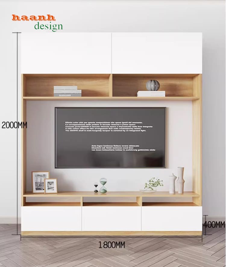Thiết kế tủ tường gỗ công nghiệp kết hợp kệ tivi hiện đại